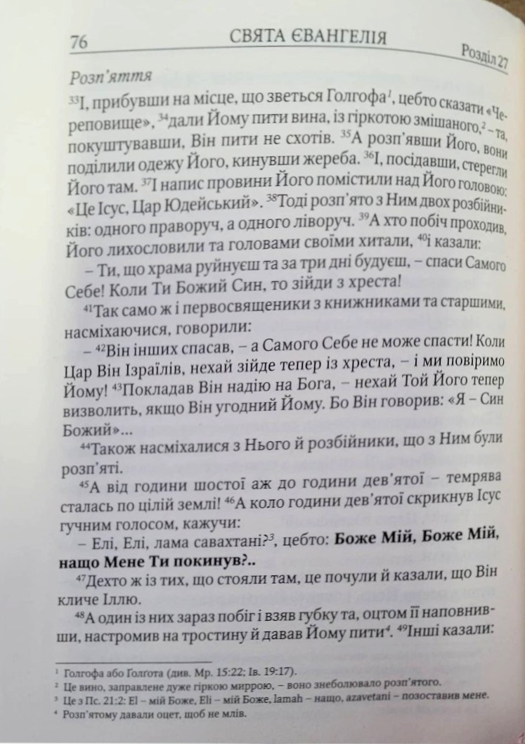 Dieses Neue Testament ist in einer bibeltreuen Übersetzung in heutigem Ukrainisch. Einspaltig, mit farbigen Karten und großer Schrift. Auf 14 Seiten befindet sich Platz für Notizen.