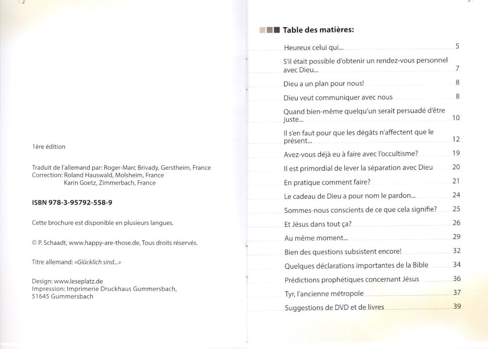 Aus dem Inhaltsverzeichnis: „Gott hat einen Plan für uns“ – „Gott möchte mit uns kommunizieren“ - „Warum gerade Jesus?“ – „Wichtige Aussagen der Bibel“ – „Sicherlich gibt es noch Fragen...“