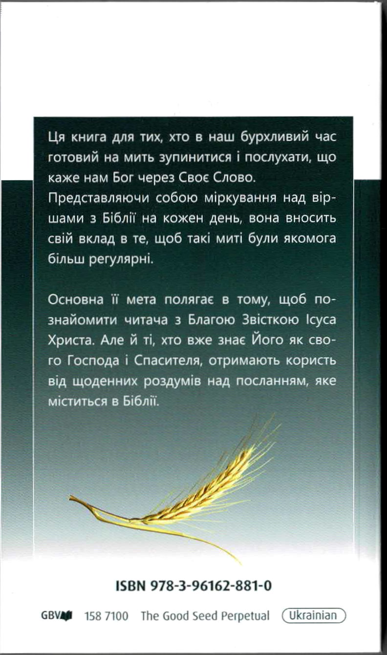 Diese permanente Version von Die gute Saat enthält keine Wochentage oder Jahr. Daher ist dieses Andachtsbuch das ganze Jahr über ideal für evangelistische Verteilzwecke geeignet.